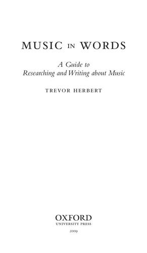 Product Description Music in Words is a compact guide to researching and writing about music, addressing all the issues that anyone who writes about music--from students to professional musicians and critics--may confront when putting together anything from brief program notes to a lengthy thesis. The book is awriting guide and a reference manual in one: the first part, a "how to" section, offers a clear explanation of the purpose of music research and how it is to be done, including basic introductions to the most necessary tools for musical inquiry (with special emphasis on strategic use of theinternet), and how they can be accessed and used. The second part is a compendium of information on style and sources for quick reference, including a straightforward presentation of the purpose and use of citation and reference systems as they are applied to and in music. As a whole, the volumegives readers a clear picture of how to write about music at different levels and for different purposes in a handy, thoroughly cross-referenced format. This American edition has been thoroughly revised and expanded, and features an extensive section on writing for the Internet and new sections on writing for jazz, popular music, world musics, and ethnography. Additionally, a companion website presents a broad range of writing samples and links tokey resources. Review "[An] excellent resource...I cannot recommend this volume highly enough...One of the most valuable books available in today's commercial market." --John Woodford, musicteachers.co.uk"A commendably thorough survey...Clearly expressed and logically ordered, Herbert's concise guide offers helpful, common-sense advice...Will serve as an invaluable reference tool." --The Strad"Well-written and easy to read... I can commend this volume to anyone considering undertaking further professional development in music...An accessible and thorough source of guidance...A useful reference tool."--Ensemble"For the student and aspiring scholar, this is life-saving stuff...For its ideas and information, music students, performers and writers of all types should treasure this book...A most worthwhile reference work."--EPTA Piano Journal"Should become the standard reference work for all serious writers about music." --The Trombonist"Presented with impeccable clarity."--Music Teacher"Not only a valuable quick-reference compendium of information but also a lively and enjoyable book that triggers as well as offers ideas." --Australian Music Teacher Magazine"Packed with practicalities, ideally suited to the needs of the undergraduate and postgraduate student...A valuable reference book."--South African Music Teacher About the Author Trevor Herbert is Professor of Music at the Open University of the UK. Before entering academic life he played trombone with London's principal orchestras and period instrument groups. He has published widely in academic books, journals, reference works and more popular media. He has broadcastextensively on BBC radio and television.