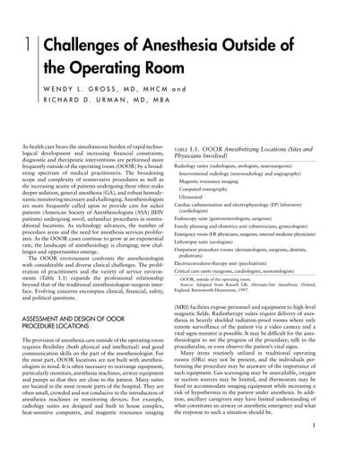 Anesthesia Outside of the Operating Room is a comprehensive, up-to-date textbook that covers all aspects of anesthesia care in OOR settings, from financial considerations to anesthetic techniques to quality assurance. With increasing numbers of procedures such as cardiac catheterization and imaging taking place outside of the main OR, anesthesia providers as well as non-anesthesia members of the patient care team will find this book critical to their understanding of the principles of anesthesia care in unique settings which may have limited physical resources. Topics include patient monitoring techniques, pre-procedure evaluation and post-procedure care, and procedural sedation performed by non-anesthesia providers. The authors address problems of anesthesia that have unique answers in OOR settings, such as patient transport and cardiac arrest, and discuss technological progress and considerations for the future. The text also covers surgical procedures and anesthetic considerations by procedure location, such as radiology, infertility clinics, field and military environments, and pediatric settings, among many others Select guidelines from the American Society of Anesthesiologists (ASA) are provided as well. Edited by the senior faculty from Harvard Medical School and with contributions from other academic institutions, Anesthesia Outside of the Operating Room provides a unique and convenient compendium of expertise and experience.