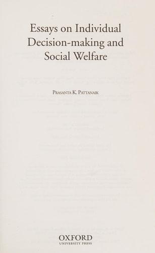 Essays on Individual Decision Making and Social Welfare (Oxford Collected Essays)