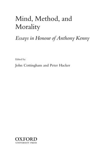 Sir Anthony Kenny is one of the most distinguished and prolific philosophers of our time. In the wide range and historical breadth of his interests, he has influenced many parts of the philosophical landscape, especially in the philosophy of mind and the theory of human action and responsibility. In contrast to many of his contemporaries, who have played down philosophy's debt to its past, Kenny's work has always been rooted in the great tradition of Western philosophical inquiry. Mind, Method and Morality celebrates Kenny's work by focusing on the four great philosophers to whom Kenny has given special attention, namely Aristotle, Aquinas, Descartes, and Wittgenstein. It contains sixteen essays (four on each philosopher) written by leading specialists in the relevant area. Strongly linked together by their focus on philosophy of mind, action and responsibility, the papers make a significant contribution to those areas of philosophy that Kenny has made particularly his own, and constitute a timely celebration of his work. While keeping to the highest standards of scholarship and philosophical rigor, the volume aims to be engaging and comprehensible to a wide audience, thus mirroring the clarity and accessibility that are the hallmarks of Kenny's own philosophical writings. A preface by the Editors describes Anthony Kenny's philosophical career, and the volume also includes a complete bibliography of his writings.